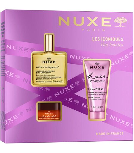 Scoprite tre prodotti iconici di Nuxe che incantano i vostri sensi e arricchiscono la vostra routine quotidiana. Il set regalo comprende: 1 x Huile Prodigieuse® 50 ml - il leggendario olio secco per viso, corpo e capelli1 x Shampoo lucidante Hair Prodigieux® 50 ml - per capelli luminosi e curati1 x balsamo per labbra Rêve de Miel con miele 15 g - per labbra morbide, intensamente nutritive e riparatrici Tutti i prodotti sono formulati e fabbricati in Francia. La confezione è realizzata al 100% in cartone, senza plastica - naturalmente anch'essa prodotta in Francia. Applicazione: Huile Prodigieuse: utilizzare il prodotto tutto l'anno, in inverno e in estate, su viso, corpo e capelli. Usare solo sul viso o mescolare alcune gocce nel palmo delle mani con la crema idratante NUXE. Stendere sul viso dal centro verso i contorni. Massaggiare con movimenti circolari sul corpo (busto, gambe, ecc.), soprattutto nelle zone molto secche e/o con smagliature. Per i capelli, lavorare sulle lunghezze e sulle punte come desiderato. Per un effetto condizionante intensivo, applicare come maschera su tutta la capigliatura 1-2 volte alla settimana, lasciare agire per 10 minuti e poi lavare. Hair Prodigieux Shine Shampoo: applicare Hair Prodigieux® Shampoo sui capelli umidi, massaggiare il cuoio capelluto e risciacquare. In caso di contatto con gli occhi, risciacquare abbondantemente. Rêve de Miel Lip Balm: prelevare una piccola quantità di balsamo con la punta delle dita e applicarlo sulle labbra e sul contorno labbra con movimenti delicati. ...