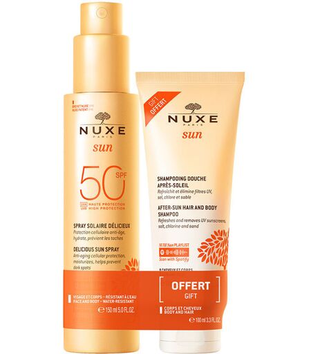 NUXE SUN SPRAY DELICIOSO ROSTRO Y CUERPO SPF50 LOTE. Protezione solare corpo Protezione solare per il viso. Tipo di Pelle: Tutti Tipi di Pelle. Testura: Crema. Formulazione: No Comedogenico. Formato: Spray. Prodotto di parafarmacia. Protezione SPF: SPF 50 alto ...