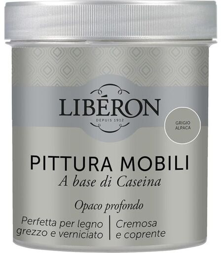 LIBERON - PITTURA MOBILI A BASE DI CASEINAOPACO PROFONDO GRIGIO ALPACA 500ML PERFETTA PER LEGNO GREZZO E VERNICIATO: compatibile con tutti i tipi di legno CONSISTENZA CREMOSA: ideale per applicazioni uniformi e senza colature ALTO POTERE COPRENTE: copertura uniforme e duratura INFORMAZIONI UTILI: Asciugatura rapida in 4 ore - Resa 6 mq per confezione (1 comodino) - Strumenti: Pennello piatto - Pulizia Strumenti: Acqua Dal 1912, Libéron si è dedicata ad ispirare il mondo del restauro e della decorazione, condividendo la sua passione per materiali di grande pregio. Grazie ad un know-how distintivo ed a prodotti di alta qualità, Libéron riesce a combinare tradizione e design contemporaneo, offrendo soluzioni che rispondono ai desideri e alle esigenze dei propri clienti, sia attuali che futuri. ...