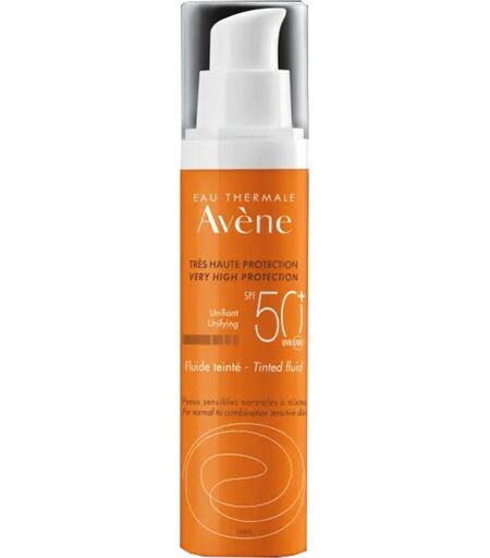 EAU THERMALE - Avène - Fluide teinté SPF 50+ - Descrizione Protezione solare uniformante molto alta, effetto tocco secco, per la pelle del viso sensibile, normale o mista. All'interno della formula del Fluido Colorato SPF 50+ è presente Sunsitive protection, composto da: - un sistema di filtri brev… ...
