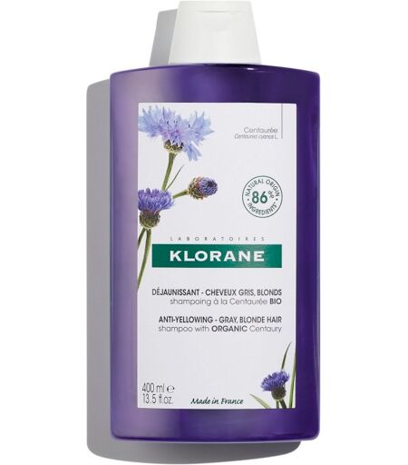 KLORANE - Shampoo alla Centaurea - Descrizione Shampoo alla Centaurea (Centourea cyanus L.). Destinato ai capelli bianchi o grigi, questo shampoo, grazie alla sua ricchezza in cianocentaureina (pigmento vegetale dalle nuance bluastre), regala delicati riflessi argentati e contrasta l'ingiallimento … ...