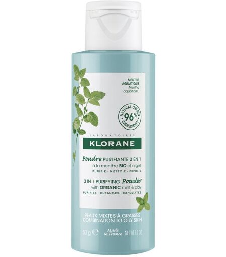Klorane Polvere Purificante 3 in 1 50g - Menta BIO & Argilla per Pelle Grassa