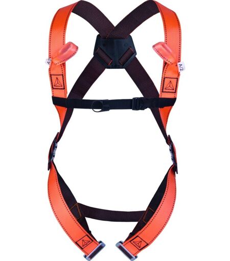 Imbracatura antiscivolo a 2 punti dorsal, sternale in acciaio, poliestere arancione. Imbracatura con 2 punti di ancoraggio e cinghie bicolore per una messa in sicurezza intuitiva, ideale per utenti occasionali. ...