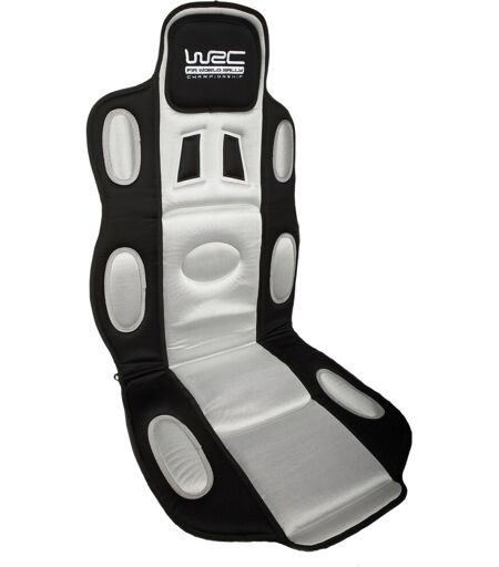 Coprisedile WRC inspirato dagli ultimi design di sedili sportivi utilizzati in competizione. Logo WRC ricamato nella parte appoggiatesta. Realizzato in tessuto maglia nera e silver con finiture cordoncini. Un` imbottitura alveolata abbinata ad un rinforzo di spugna ed una zona diappoggio per la schiena procura una sensazione di benessere durante la guida. Universale, installazione semplice con elastici. ...