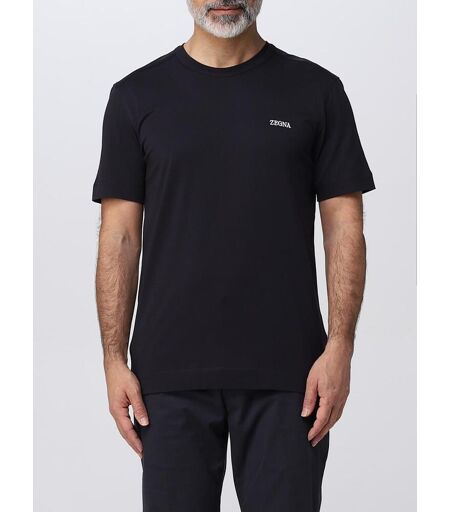 Zegna T-shirt in cotone con logo stampato Blue Taglia 46