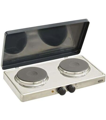 Fornello elettrico a 2 fuochi, con coperchio- Colore "Argento- 2 caminetti elettrici- Con copertura- Dimensioni: L.47 x P.29 x H.8.5 cm ...