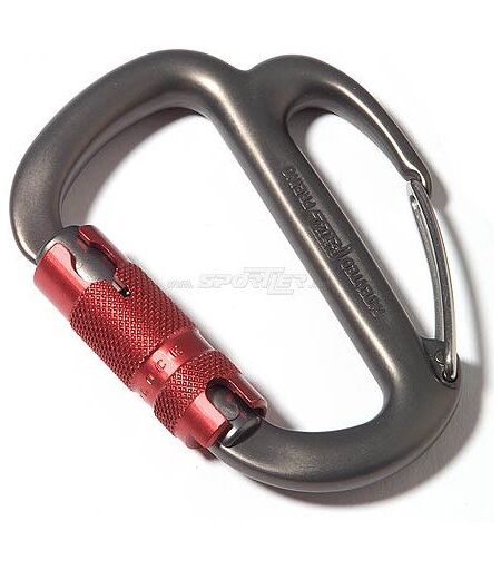 Moschettone per la discesa con rimando di frenaggio: Freino di Petzl, sviluppato per collegare un discensore oppure un assicuratore. Rimando di frenaggio supplementare, che permette di rinviare la corda per controllare meglio la discesa (corda sottile, gelata o infangata, quando si è carichi o con il Gri Gri). passaggio facile e sicuro della corda nel rimando, con una sola mano e senza aprire il moschettone bloccaggio automatico del moschettone apertura mediante semplice rotazione grazie alla ghiera "Twist Lock" sistema "Keylock" (sistema di aggancio liscio tra corpo e leva del moschettone) apertura tra il becco del moschettone e la leva aperta 15 mm, 12 mm tra il becco del rimando e la leva filo aperta certificazioni: CE EN 362, CE EN 12275 tipo B, UIAA ...