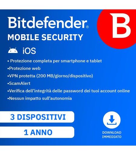Bitdefender Mobile Security 1 Anno 3 Dispositivi