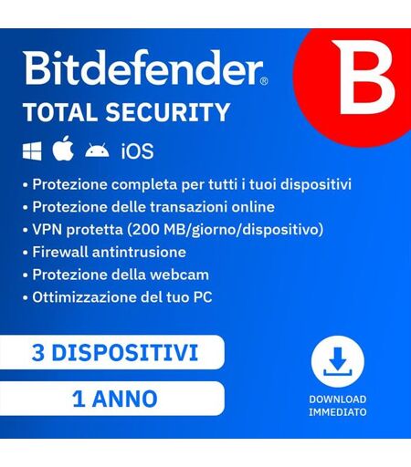 Bitdefender Total Security 1 Anno 3 Dispositivi