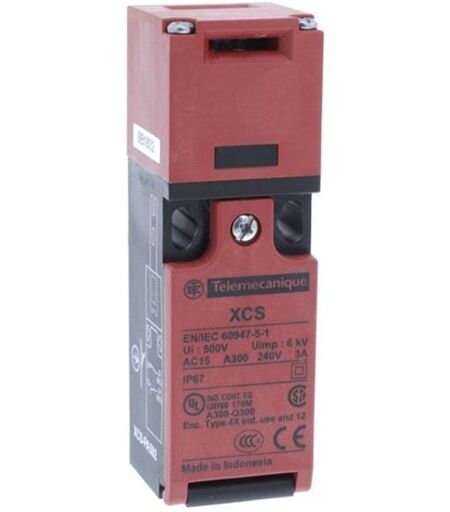 Interruttore di sicurezza Telemecanique Schneider, con le seguenti caratteristiche: Corrente termica convenzionale in cassetta [Ithe]: 10A Tensione nominale di tenuta agli impulsi [Uimp]: 6 kV conforme a EN/IEC 60947-5-1 Protezione contro i cortocircuiti: 10A fusibile cartuccia tipo gG (gl) Rtc estrazione forzata attuatore: 10N Maximum operating rate: 10 cicli/m per la massima durata Livello di sicurezza: Fino alla categoria 4 Con sistema di monitoraggio appropriato correttamente cablato conforme a EN/ ISO 13849-1 Fino a PL = e Con sistema di monitoraggio appropriato correttamente cablato conforme a EN/ISO 13849-1 Può raggiungere SIL 3 Con sistema di monitoraggio appropriato correttamente cablato conforme a EN/ IEC 61508 Tensione nominale di isolamento [Ui]: 300V conforme a UL 508 500V conforme a EN/IEC 60947-1 300V conforme a CSA C22.2 No 14 Corrente nominale di impiego [Ie]: 6A a 120 V, AC-15, A300 conforme a EN/IEC 60947-5-1 3A a 240 V, AC-15, A300 conforme a EN/IEC 60947-5-1 0,55A ...