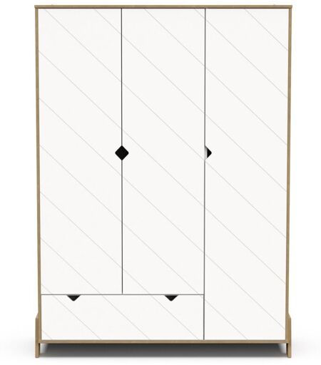 CALICOSY - Armadio a 3 ante e 1 cassetto, decorazione bianca e quercia Hamilton H188,1 cm - albizia