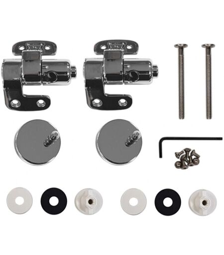 Kit di abbassamento a cerniera per alette OLFA (coppia).Kit cerniera incluso 2 coperture bianche Compatibile con i modelli Tradition, Europe, Universal (prima del 2016), Junior, Senator e AccordScegliete un kit di cerniere di alta qualità per fissare il vostro sedile del water alla tazza del water. Si compone di 2 cerniere in acciaio inossidabile, 2 guarnizioni antiscivolo, 2 viti in acciaio inossidabile, 2 dadi anticorrosione e 2 tappi di fissaggio bianchi. Non c'è bisogno di chiamare un idraulico, puoi cambiare le cerniere del tuo sedile del water da solo! ...
