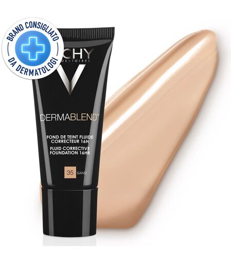 Vichy Dermablend Fondotinta Correttore Fluido 16h tonalità 35 - 30 ml correttore fino a 16 oreVichy Dermablend Fondotinta Correttore Fluido 16h tonalità 35 dalla texture liquida e leggera perfeziona l'incarnato nascondendo imperfezioni, occhiaie, rossori e macchie della pelle senza lasciare tracce o creare un effetto maschera. Fin dalla prima applicazione, il colorito appare uniforme e omogeneo, mentre il viso ritrova luminosità e radiosità. Specificamente formulato per correggere discromie, occhiaie e rossori diffusi, questo fondotinta offre una copertura impeccabile senza appesantire la pelle. La tonalità n. 15 Opal si fonde perfettamente con l'incarnato; garantendo un risultato naturale e a lunga tenuta. I pigmenti ad alta affinità cutanea, sapientemente calibrati nella formula del Fondotinta Correttore Dermablend, assicurano una tenuta fino a 16 ore* *(test di auto-valutazione su 75 soggetti), per un make-up impeccabile che dura tutto il giorno.• Efficace contro colorito non uniforme, occhiaie, rossori diffusi.• Regala una copertura perfetta delle imperfezioni cutanee, senza accumuli localizzati o effetto maschera. Tonalità n.35 Opal.• I pigmenti sono in affinità perfetta, come fusi con la pelle e concorrono nella formulazione del Fondotinta Correttore Dermablend ad offrire una tenuta per 16H* • Texture liquida e leggera• Agisce senza lasciare tracce *(Test di auto-valutazione su 75 soggetti).Modo d´uso:Detergere la pelle e applicare la crema da giorno abituale prima di stendere il fondotinta. Depositare un poco di fondotinta sul dorso della mano e scaldare la texture con piccoli movimenti circolari con la punta delle dita. Applicare picchiettando lievemente dall’interno verso l’esterno, per una ripartizione uniforme e rapida del prodotto sull’insieme del viso. Picchiettate sulle imperfezioni per una copertura ottimale. Stenderlo dall’interno verso l’esterno, accarezzando velocemente il viso.IngredientiAqua / Water / Eau, Undecane, Dimethicone, Glycerin, Titanium Dioxide [Nano] / Titanium Dioxide, Tridecane, Polyglyceryl,4 Isostearate, Pentylene Glycol, Cetyl Peg/Ppg,10/1 Dimethicone, Hexyl Laurate, Magnesium Sulfate, Disteardimonium Hectorite, Stearic Acid, Trihydroxystearin, Silica Silylate, Silica, Helianthus Annuus Seed Oil / Sunflower Seed Oil, Cellulose Gum, Aluminum Hydroxide, Disodium Stearoyl Glutamate, Tocopherol, Vitreoscilla Ferment, Acetylated Glycol Stearate, Pentaerythrityl Tetra,Di,T,Butyl Hydroxyhydrocinnamate, Ethylhexylglycerin ...