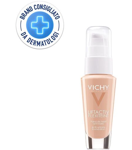 Vichy Liftactiv Flexiteint Fondotinta Effetto lifting tonalità 55 - 30 ml protezione SPF20Il fondotinta antirughe Liftactiv Flexiteint tonalità 55, arricchito con Collagyl, uniforma l'incarnato e riduce la visibilità delle rughe, donando un effetto lifting immediato. La sua texture leggera illumina il viso senza alterarne i tratti naturali, per un risultato fresco e radioso. Con SPF 20 per una protezione quotidiana dai danni del sole. Liftactiv Flexiteint offre un'immediata luminosità e un visibile effetto lifting, minimizzando le rughe e perfezionando la pelle. Per l'applicazione; si consiglia di stendere la crema giorno abituale come base per il trucco. La sua formula ipoallergenica e non comedogena, arricchita con ingredienti chiave come Collagyl, Ramnosio e Acqua Vulcanica di Vichy, rispetta la pelle e minimizza il rischio di irritazioni. Liftactiv Flexiteint: il fondotinta che unisce make-up e trattamento anti-età per una pelle radiosa e levigata.• Il fondotinta antirughe Liftactiv Flexiteint, arricchito con collagyl, uniforma e riduce la visibilità delle rughe.• La texture dona un effetto make-up liftante immediato e illumina il viso senza alterarne le caratteristiche naturali.• Con SPF 20 per una protezione quotidiana dai danni del sole.• Effetto lifting• Formula ipoallergenicaModo d´uso:Detergere la pelle e applicare la crema da giorno abituale prima di stendere il fondotinta. Depositare un poco di fondotinta sul dorso della mano e scaldare la texture con piccoli movimenti circolari con la punta delle dita. Applicare picchiettando lievemente dall’interno verso l’esterno, per una ripartizione uniforme e rapida del prodotto sull’insieme del viso. Picchiettate sulle imperfezioni per una copertura ottimale. Stenderlo dall’interno verso l’esterno, accarezzando velocemente il viso.IngredientiAqua / Water, Dimethicone, Phenyl Trimethicone, Ethylhexyl Methoxycinnamate, Cyclohexasiloxane, Propanediol, Butylene Glycol, Alcohol Denat., Cetyl Peg/Ppg,10/1 Dimethicone, Synthetic Fluorphlogopite, Polyglyceryl,4 Isostearate, Pentylene Glycol, Peg,30 Glyceryl Stearate, Peg/Ppg,18/18 Dimethicone, Copernicia Cerifera Cera / Carnauba Wax, Parfum / Fragrance, Cellulose Gum, Rhamnose, Aluminum Hydroxide, Phenoxyethanol, Magnesium Sulfate, Adenosine, Disodium Stearoyl Glutamate, Hydrolyzed Soy Protein, Acrylates Copolymer ...