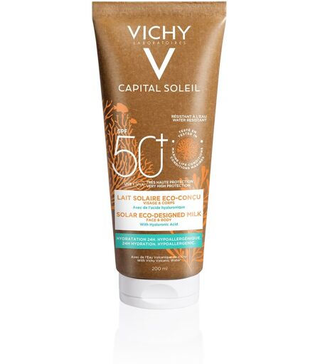 CAPITAL SOLEIL LATTE SOLARE ECO - SOSTENIBILE SPF 50+ - Descrizione Latte solare viso e corpo eco - sostenibile, con acido ialuronico e Acqua Vulcanica di Vichy. 24h di idratazione. Protezione anti - UV con Mexoryl XL, ad ampio spettro contro i raggi UVA, inclusi gli UVA lunghi. Ipoallergenico. For… ...