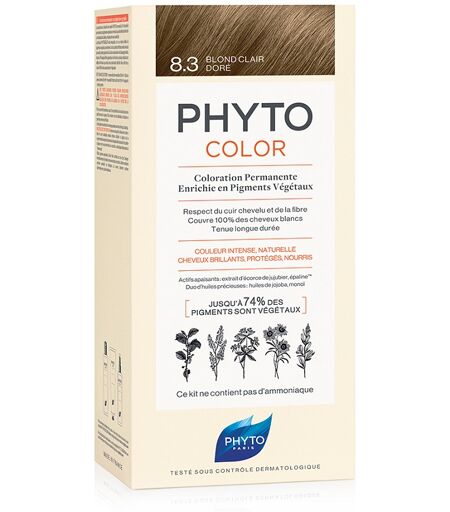 PHYTOCOLOR 8.3 Biondo chiaro dorato - Descrizione Gli esperti coloristi PHYTO creano la prima gamma di colorazione permanente a base di pigmenti vegetali senza ammoniaca che unisce performance del colore bellezza dei capelli e rispetto del cuoio capelluto. La formula PHYTOCOLOR è arricchita da un… ...