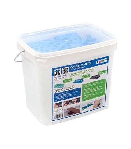 Seau de 3 x 100 cales plates universelles Le seau comprend 100 cales plates de 2 mm, 100 cales plates de 3 mm et 100 cales plates de 5 mm. Les cales plates servent essentiellement au calage et à la mise à niveau pour les petites hauteurs. Ces cales universelles sont employées par tous les métiers (terrassiers, charpentiers ou carreleurs) qui ont sans cesse besoin de niveler les travaux qu'ils réalisent. Chaque cale est découpable, vous pouvez donc avoir 4 cales en 1. En empilant les cales les unes sur les autres, vous augmenterez la hauteur souhaitée. Caractéristiques Techniques : Conseil de pose : Usage du produit : Dimensions : 2, 3 et 5 mm Pays de fabrication : France Garantie : Type d'accessoires : Cales Résistances : Résistant aux solutions acides et basiques, aux agents atmosphériques, aux températures entre -30°C et +60°C Matière : Polypropylène recyclé Compatibilité : Pour plot lambourde Incompatible avec les produits CLEMAN. Fabrication française ...