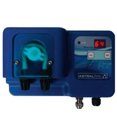 La pompa peristaltica Astral Micro Rx è progettata per la regolazione automatica della piscina. Inietta cloro liquido nell'acqua della piscina. Attenzione: questa pompa da sola non è in grado di regolare il pH della vostra piscina. Per fare ciò, ti consigliamo di utilizzare una pompa pH Astral Micro. La pompa dosatrice Micro RX regola automaticamente il livello di cloro nell'acqua della vostra piscina (redox). Come funziona MicroRX? La sonda redox analizza in tempo reale il livello di cloro nell'acqua. Se questa misura è inferiore al valore impostato, la pompa peristaltica si avvia. Inietta proporzionalmente il cloro liquido nel circuito in modo da raggiungere con precisione il valore impostato senza sovradosare. La pompa dosatrice Micro RX viene consegnata con: sonda Redox, portasonda, soluzione di calibrazione e kit di installazione (valvola di iniezione, tubo di aspirazione da 2 m, tubo di mandata da 2 m e 2 collari di supporto diametro 50 mm). Regolazione del dosaggio da 0% a 100% ...