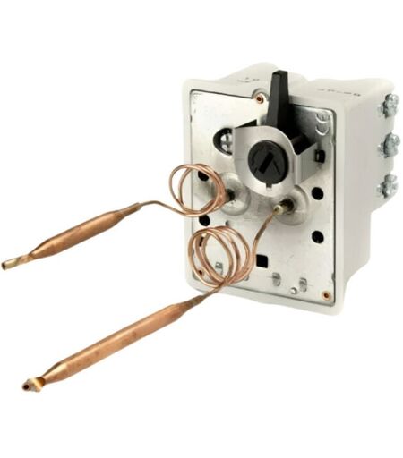 Termostato per scaldabagni commerciali KGPC 450 Bi Bulbe triphasé COTHERM riferimento KBTS900301.Termostato bi-bulbo trifase e monofase progettato per gli scaldabagni industriali collettivi, che offre una regolazione precisa e una maggiore sicurezza.Specifiche tecnicheApplicazione: Scaldabagni industriali.Lunghezza sonda:Lampadina sinistra: 38 cm.Lampadina destra: 48 cm.Lunghezza capillare: 450 mm.Intervallo di controllo: da 45 a 70°C (precisione ±5°K).Temperatura di sicurezza: 90°C (precisione ±7°K).Capacità di rottura:30 A, 240 volt.20 A, 400 volt.Compatibilità con lo scaldabagno: THERMOR SAUTER PACIFICCostruzione:Termostato incorporato.Diverse staffe di montaggio incluse.VantaggiRegolazione precisa per un funzionamento stabile ed efficiente.Doppia lampadina per un rilevamento ottimale.Protezione integrata contro il surriscaldamento.Può essere adattato a diversi sistemi industriali grazie al suo kit completo.Applicazioni Ideale per gli impianti di riscaldamento collettivo dell'acqua ...