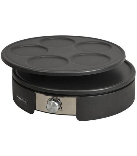 Macchina per crepes KSLW170F in formato professionale del marchio Kitchen Chef. Per fare una grande crepe bretone di 37 cm o 5 mini-pancakes salati o dolci di 11 cm. 2 piastre rimovibili in alluminio rivestito antiaderente con bordo antigoccia Termostato regolabile in 5 posizioni per adattare la tua cottura. Fornito con 1 spatola e un distributore di pasta. Materiale piastra: alluminio. Rivestimento della piastra: antiaderente. Termostato regolabile. Colori: nero. Potenza: 1500 W. Dimensioni (LxAxP): 37 x 9,2 x 38,2 cm. Peso netto: 3,3 Kg. ...