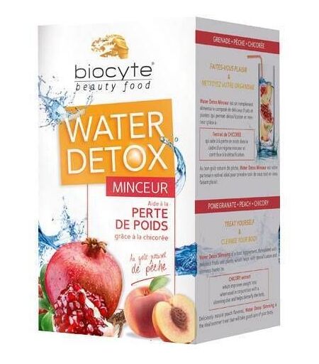 Gli integratori non sostituiscono un’alimentazione equilibrata e variegata e uno stile di vita sano. Water Detox Slimming è un integratore alimentare, formulato con deliziosi frutti e piante, che aiuta a detossificarsi grazie a: Estratto di cicoria che aiuta la perdita di peso se abbinato a una dieta e supporta la detossificazione Al delizioso aroma naturale di pesca, Water Detox Slimming è il trattamento estivo ideale che si prenderà cura del corpo. Per chi è? Per le persone alla ricerca di un prodotto detossificante a base di ingredienti naturali che prestano attenzione al loro peso. Per coloro che desiderano iniziare un programma di dimagrimento. Per chi cerca una bevanda fruttata e senza zucchero da sorseggiare durante l'estate per detossificare il corpo. Per chi non prende integratori alimentari perché non sono gradevoli. Ingredienti: Maltodestrine, estratto di radice di cicoria (Cichorium intybus) 60 mg, estratto di succo di frutta di melograno (Punica garantum) 500 mg, polvere di frutta di pesca (Prunus persica) 360 mg, aroma naturale, antiagglomeranti: Bicarbonato di magnesio, Diossido di silicio, Acidificanti: Citrato di sodio, Acido citrico: Succo di barbabietola concentrato in polvere (Beta vulgaris) 72,2 mg, Colorante: beta-carotene, Edulcoranti: acesulfame di potassio, sucralosio Analisi media Per 16 g Estratto di radice di cicoria (Cichorium intybus) 600 mg Polvere di frutta di pesca (Prunus persica) 360 mg Succo di frutta del melograno (Punica granatum) in polvere 500 mg Succo concentrato di radice di barbabietola in polvere (Beta vulgaris) 27,2 mg Assunzione consigliata: Versare 250 ml di acqua su 4 misurini rasi (16 g) e agitare fino a completa dissoluzione. Bere una volta al giorno. Bere freddo. Avvertenze: Non superare la dose giornaliera raccomandata. Tenere fuori dalla portata dei bambini al di sotto dei tre anni. Conservazione: Conservare in un luogo fresco e asciutto, lontano dalla luce. Si prega di fare riferimento, se necessario, ad ulteriori istruzioni riportate sulla confezione. Contenuto netto: 112 g Produttore: Biocyte 1555 Chem. de la Plaine 06250 Mougins Francia ...