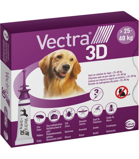 ceva Vectra 3D Viola Spot-On Cani Da 25 A 40 Kg 3 Pipette Monodose