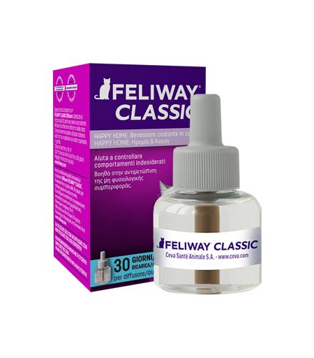 FELIWAY CLASSIC Ricarica - Descrizione Ricarica Feliway Classic Diffusore. Aiuta i gatti a tenere il ritmo della vita moderna, consentendo un pieno appagamento ed evitando marcature urinarie, graffiature o tendenza a nascondersi. Feliway Classic è una copia del feromone facciale felino che i gatti … ...