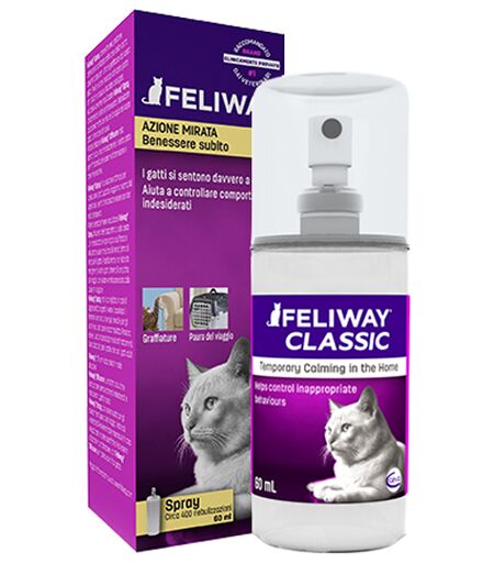 FELIWAY CLASSIC SPRAY - Descrizione Aiuta i gatti a tenere il ritmo della vita moderna, consentendo un pieno appagamento ed evitando marcature urinarie, graffiature o tendenza a nascondersi. Feliway Classic è una copia del feromone facciale felino che i gatti depositano strofinando il loro muso sul… ...