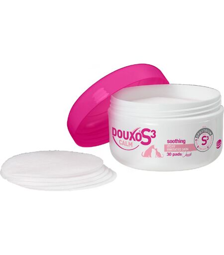 DOUXO S3 CALM - Descrizione Dischetti di cotone molto imbevuti per lenire equilibrare e rinforzare la pelle di cani e gatti con pelle pruriginosa sensibile e irritata. OPHYTRIUM è l'ingrediente chiave selezionato per l'alta tollerabilità e per la sua azione simultanea sulle tre barriere cutanee:… ...
