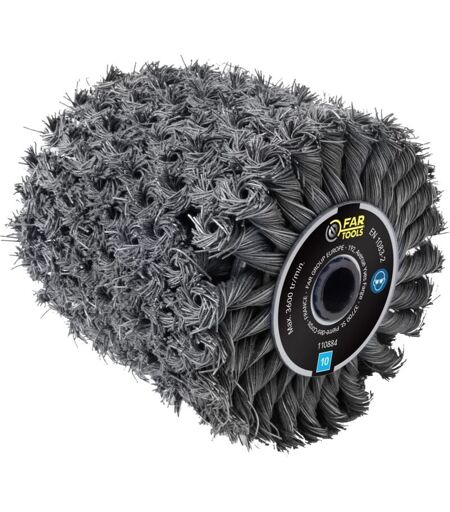 FAR TOOLS Spazzola metallica Ø 120 mm L 100 mm - 110884 - Spazzola metallica ritorta Consigliata per la sverniciatura ultra-forte di superfici piane in pietra e metallo Diametro 120 mm, larghezza 100 mm - Prodotto spedito dalla nostra piattaforma situata a Rodez, Aveyron - prodotto conforme alle norme francesi - - Prodotto spedito dalla nostra piattaforma di Rodez, Francia - prodotto conforme agli standard francesi ...