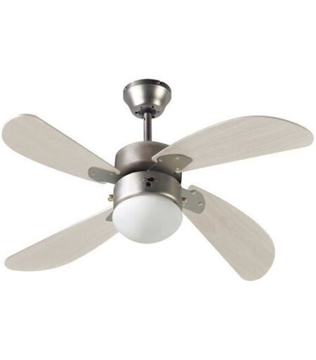 FARELEK Bermudes o 107 cm - Ventilatore da soffitto reversibile, 4 pale in rovere chiaro + illuminazione 1 Globo 60W E27 - 112423 -