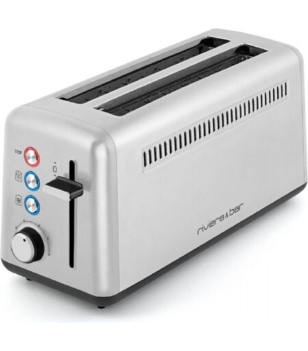 Riviera Toaster & Bar QGP480 con 2 fessure extra lunghe per tostare fette di pane lunghe fino a 25 cm! Funzioni Golden, Reheat e Frozen bread per tutti i tipi di pane (pane bianco, baguette, pane alla frutta?), Funzione Stop per interrompere la doratura in qualsiasi momento e selettore del livello di doratura a 6 posizioni. DESIGN ED ELEGANTE: Corpo in acciaio inox satinato. Comando retroilluminato bottoni.Finitura cromata su bottoni e inserti.COMFORT D'USO: 2 fessure extra lunghe 25 cm per adattarsi a tutti i tipi e dimensioni di pane Sistema autocentrante per fette correttamente su ogni lato.POLIVALENTE: Funzioni Browning, Reheating e Frozen bread per tutti i tipi di pane (pane bianco, baguette, pane alla frutta?) Funzione stop per interrompere la doratura in qualsiasi momento Selettore livello di doratura a 6 posizioni. Numero di slot: 2. Colori: acciaio inossidabile. Materiale: acciaio inossidabile. Potenza: 1500 W. Voltaggio: da 220 a 240 V ~ da 50 a 60 Hz. Arresto automatico e ...