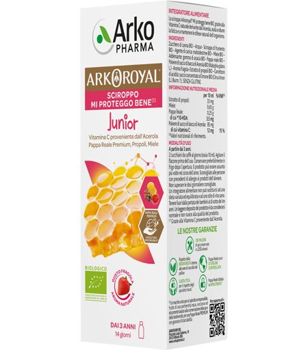 ARKOROYAL SCIROPPO MI PROTEGGO BENE JUNIOR - Descrizione Integratore alimentare a base di acerola, propoli, miele e pappa reale. ArkoRoyal ha ottenuto il primo marchio di qualità di apicoltura responsabile per qualità Premium, che include: - pappa reale naturale, senza conservanti, senza coloranti … ...