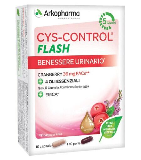 Cys Control Flash Benessere delle Vie Urinarie 20 Capsule Caratteristiche: Cys Control Flash è un integratore alimentare studiato per il benessere e la protezione delle vie urinarie. La sua formula combina cranberry, ricco di proantocianidine, erica, utile per la funzionalità urinaria, e un mix esclusivo di 4 oli essenziali 100% puri e naturali OEBBD (Botanicamente e Biochimicamente Definiti). Grazie a questa sinergia, il prodotto sostiene il drenaggio dei liquidi corporei, aiuta a preservare l’equilibrio del tratto urinario e dona un supporto naturale in caso di fastidi ricorrenti. Un integratore pratico e completo per mantenere il benessere quotidiano. Con Cranberry (Vaccinium macrocarpon) ricco in proantocianidine Erica (Calluna vulgaris) per favorire il benessere urinario Arricchito con 4 oli essenziali 100% puri e naturali OEBBD Sostiene la funzionalità delle vie urinarie Favorisce il drenaggio dei liquidi corporei Utile in caso di fastidi urinari ricorrenti Integratore naturale in pratiche capsule Confezione da 20 capsule FAQ Cys Control Flash Benessere delle Vie Urinarie 20 Capsule: A cosa serve Cys Control Flash? È un integratore utile per favorire il benessere delle vie urinarie e il drenaggio dei liquidi corporei grazie all’azione combinata di cranberry, erica e oli essenziali. Quali sono gli ingredienti principali di Cys Control Flash? Gli ingredienti chiave sono cranberry, erica e 4 oli essenziali 100% puri e naturali OEBBD, selezionati per le loro proprietà benefiche sulle vie urinarie. Come si assume Cys Control Flash? La posologia consigliata è di 1-2 capsule al giorno, preferibilmente con un abbondante bicchiere d’acqua, salvo diversa indicazione medica. Cys Control Flash è adatto a tutti? È indicato per adulti che desiderano sostenere la funzionalità urinaria. Non è raccomandato in gravidanza o allattamento senza parere medico. Cys Control Flash può sostituire un trattamento medico? No, è un integratore alimentare di supporto. In presenza di sintomi persistenti o infezioni urinarie è necessario consultare un medico. ...