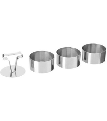 Set di 3 forme di placcatura assortite. modelli assortiti: rotondo e quadrato. acciaio inox. dimensioni rotonde: 8x4cm. dimensioni quadrate: 8x8x4cm. ...