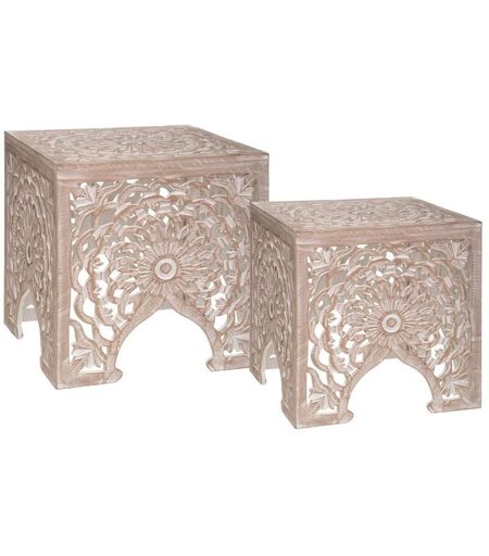 Tavolini di servizio "ayden", legno intagliato - Atmosphera createur d'interieur. Colore : Beige. Materiale principale : Mdf - panneau de fibres de bois. Lunghezza : 45.00 cm. Larghezza : 45.00 cm. Altezza : 46.50 cm. Peso : 9.8 kg. ...