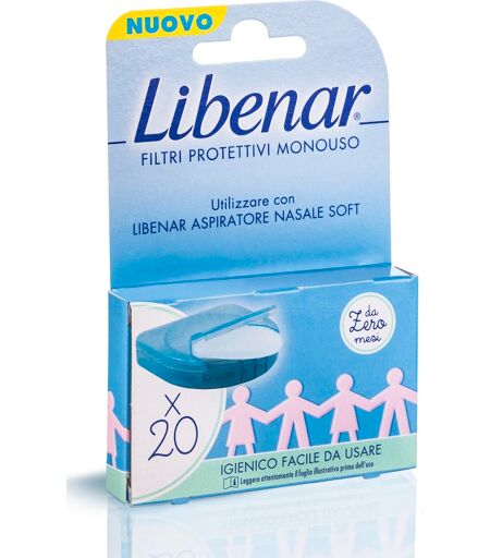 Libenar - FILTRI PROTETTIVI MONOUSO - Descrizione Dispositivo Medico Classe I (Direttiva 93/42/CEE). Filtri monouso per Libenar Aspiratore Nasale Soft. Da zero mesi. Libenar Aspiratore Nasale Soft e la sua confezione di filtri monouso sono indicati per la rimozione delle secrezioni nasali in caso d… ...
