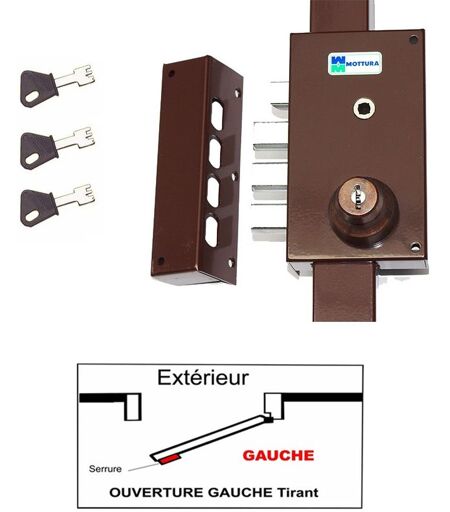 Mottura 448: Serrature di altissima qualità. Dimensioni della custodia 155 x 91 x 30 mm. Corsa del perno 24 mm. Perni in acciaio temprato Corsa barre 15 mm. Aste regolabili. Niente da tagliare. Apertura con maniglia include quadrato, diametro 7 mm. Doppia pompa interna/esterna in acciaio al molibdeno. 50 mm standard. Finitura: marrone La serratura viene consegnata con: 3 chiavi a pompa - 1 chiusura serratura + 1 chiusura alto + 1 chiusura a terra Scatola da 1 bar (lunghezza massima 2630 mm) viti e accessori vari Dimensioni del prodotto : Dimensions boitier : 155 x 91 x 30 mm Da centro a centro : 45 mm sous têtière Matériau : Acier Couleur : Marron Epaisseur : 30 mm Nombre de Cles : 3 Longueur : 155 mm Largeur : 91 mm Forme du produit : Rectangle Type de montage : A Visser Verrouillable : À clé Nombre de goupilles / points : 3 Taille du cylindre : Longueur 50 mm Hauteur : 155 mm ...