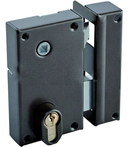 Serratura a applique 74 x 126 mm. Verticale. Adatta a cilindri 30 x 50 mm o 30 x 60 mm (venduti separatamente). Dimensioni del prodotto : 74 x 126 mm Da centro a centro : NC Matériau : Acier Zingue Couleur : Noir Epaisseur : 22 mm Longueur : 126 mm Largeur : 74 mm Forme du produit : Rectangle Type de montage : A Visser Verrouillable : Cylindre à clé (non Fourni) Hauteur : 126 mm ...