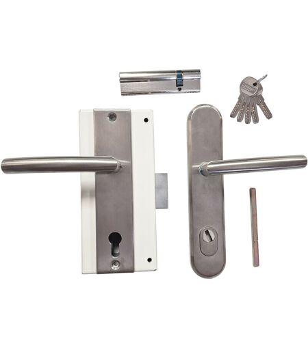Serratura di ricambio adattabile FICHET. Per porte da 40 mm. Set completo di sostituzione per porte con apertura a destra (Ref 1352) o a sinistra (Ref 1353), in base alle vostre esigenze, comprendente: - Una serratura a cilindro europeo di alta qualità MOTTURA "Hassle Free". - Un cilindro "KLOSE besser" da 30 x 85 mm con 5 chiavi - Una maniglia di alta gamma BLINDEE SECUR in acciaio inox 304 sulla piastra esterna: - Una maniglia su INT. Quadrato in acciaio inox 304. Dimensioni PIASTRA ESTERNA : 220 mm x 52 mm x 13 mm Dimensioni PIASTRA INTERNA : 220 mm x 50 mm x 7 mm Dimensioni maniglia: 135 x 18 mm Sporgenza senza serratura (porta esterna) : 69 mm / Sporgenza con serratura Mottura (porta interna) : 106 mm Un sistema molto pratico e ingegnoso che evita di dover cambiare l'intera porta, sostituendo solo il cilindro quando c'è un cambio di occupante. Dimensioni del prodotto : Dimensions Plaque : 220 mm x 50 mm x 8 mm Matériau : Inox Couleur : Inox ...
