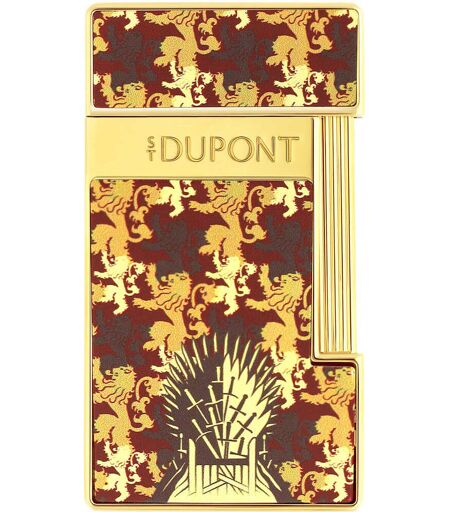 Accendino Di S.T.Dupont In Collaborazione Con Game Of Thrones. Accendino Slimmy Con Il Disegno, L'Emblema Della Casa Lannister, Il Leone E Il Suo Motto “Hear Me Roar”. Torcia Blu Da 1 Cm. Fiamma Regolabile. Finiture Dorate.Accendino Fornito Vuoto Di Gas, ...