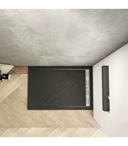 AICA ITALY - Piatto Doccia Rettangolare Ultra Sottile 3cm In Pietra Vulcanica e Resina Mista Finitura Pietra Nera Ruvida Con Scarico Piletta 80x160 cm