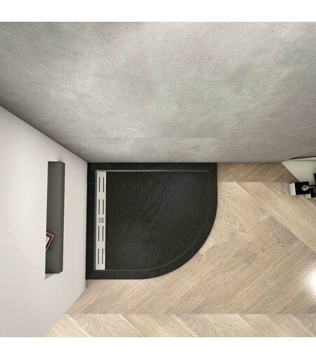 AICA ITALY - Piatto Doccia Semicircolare Ultra Sottile 3cm In Pietra Vulcanica e Resina Mista Finitura Pietra Nera Ruvida Con Scarico Piletta 90x90 cm