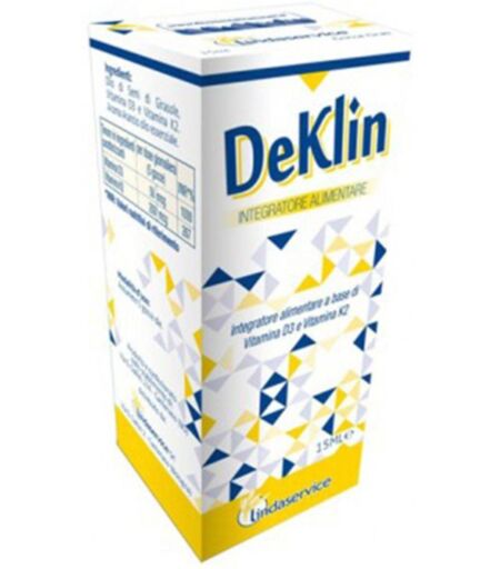 DeKlin - Descrizione Integratore alimentare a base di vitamina D3 – carenza di calcio, aumento delle difese immunitarie (1.000 VNR% corrispondenti a 2.000 unità in 5 gocce) – e vitamina K2 – carenza di calcio (267 VNR% corrispondenti a 200 mcg in 5 gocce). - Ingredienti Olio di semi di girasole, vi… ...