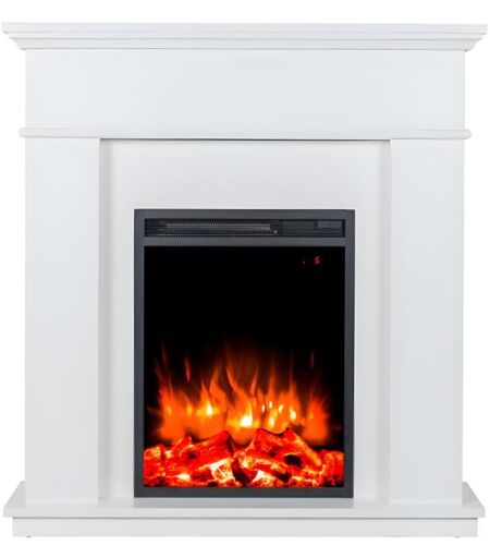Unique Camino elettrico da appoggio VESUVIA - con mantello - L98 x P24 x H102,5 cm - Bianco