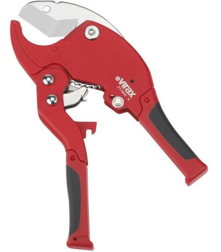 Virax - Tagliatubi in plastica 40 mm Tagliatubi utilizzato per il taglio rapido di tubi in PVC, PP, PE, PER, ABS, PEHD. Rack per la riduzione dello sforzo. Chiusura a chiave. Manico rivestito antiscivolo per una migliore presa. A : 40 mm A" OD : 1.1/2 Lunghezza: 250 mm Altezza: 135 mm Peso: 0,355 Kg ...