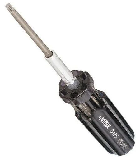 Manico di grande diametro: - Serraggio o allentamento molto efficace, - Presa eccellente, - Resistenza all'impatto e alla torsione. Punta: T10; T15; T20; T25; T27; T30; T40. Lunghezza totale: 185 mm. Lunghezza del solo tappo finale: 35 mm. Visual ...