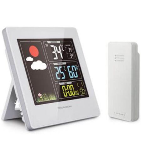 Stazione multifunzione Temperatura : Interno + Esterno Portata massima tra la sonda e l'unita' centrale: max 60m Schermo colorato Funzione sveglia e tasso di umidità Dimesione stazione 120x120x25mm Dimensione sonda 92x40x23mm ...