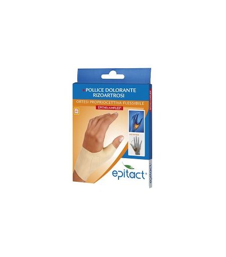 EPITACT - Ortesi flessibile - Descrizione L'ortesi mantiene il pollice in posizione di riposo riducendo le forze che si esercitano sull'articolazione. Dona sollievo dal dolore e limita anche l'evoluzione della rizoartrosi. Allineando le ossa del pollice, l'ortesi limita le forze che si esercitano s… ...