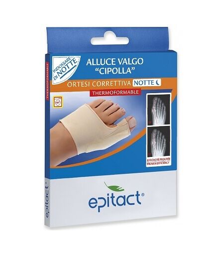 EPITACT Alluce valgoNotte Descrizione L’ortesi correttiva rigida notte aiuta a correggere la deformazione e a limitare l’evoluzione dell’alluce valgo. Contribuisce a dare sollievo ai dolori articolari notturni ed elimina i dolori da contatto. Finiture che ne garantiscono una durata di diversi mesi d'utilizzo. Lavabile in lavatrice a 40° all’interno del sacchetto di lavaggio fornito con il prodotto. Modalità d'uso Modellare l'ortesi seguendo le istruzioni riportate sul foglietto illustrativo di termoformatura incluse nel pack o visionando il video su www.epitact.it. Formato Confezione contenente un articolo. Taglia S / M / L ...